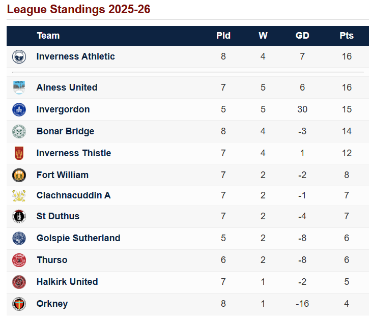 League Table as of 14/10/2025.